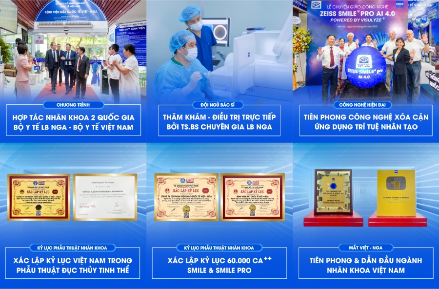 Là đại diện duy nhất của Việt Nam trong Chương trình hợp tác Nhãn khoa cấp nhà nước giữa Bộ Y tế Việt Nam - Liên Bang Nga, bệnh viện đang sở hữu các công nghệ xóa cận tiên tiến nhất bao gồm: Relex Smile, Super Relex Smile, Smile Pro, Super Smile Pro, Phakic ICL... Sau xóa cận, bệnh nhân sẽ sở hữu đôi mắt với thị lực sắc nét và khỏe mạnh.