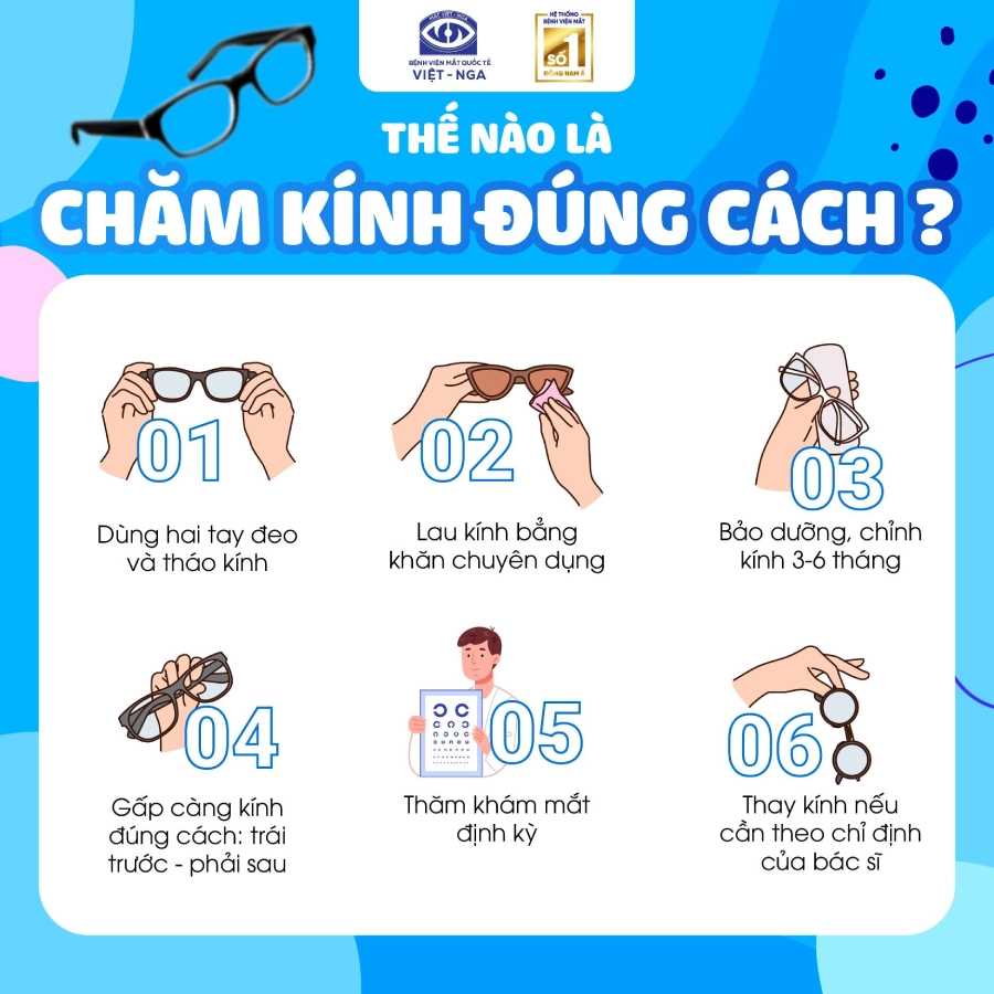 Hãy bỏ túi ngay 6 nguyên tắc chăm kính đúng cách được bác sĩ tại Bệnh viện Mắt Quốc tế Việt – Nga khuyến nghị: