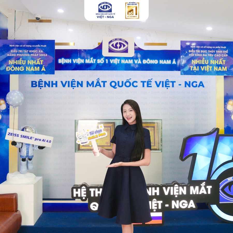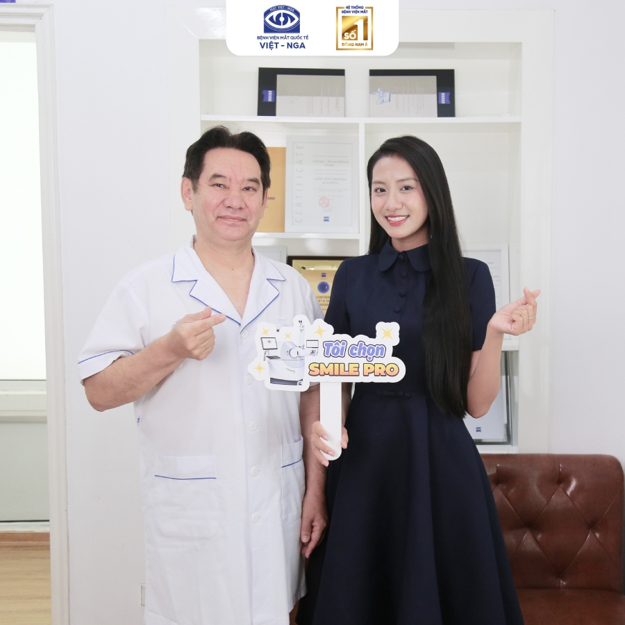 Sau khi tìm hiểu nhiều bệnh viện nhãn khoa trên cả nước, Hoa hậu Việt Nam 2024 đã lựa chọn khám – mổ tại Bệnh viện Mắt Quốc tế Việt – Nga. “Việc đeo kính đối với Linh rất là bất tiện. Đeo kính liên tục thì cảm thấy mỏi mắt, mà không đeo kính thì mình không tự tin làm việc gì hay gặp gỡ ai được. Mình lựa chọn mổ Smile Pro bởi đây là phương pháp hiện đại nhất. Hơn nữa tại bệnh viện còn có “chiến thần xóa cận” là TS.BS Boris Fattakhov – người đã góp phần xác lập Kỷ lục Việt Nam với phương pháp xóa cận này”.