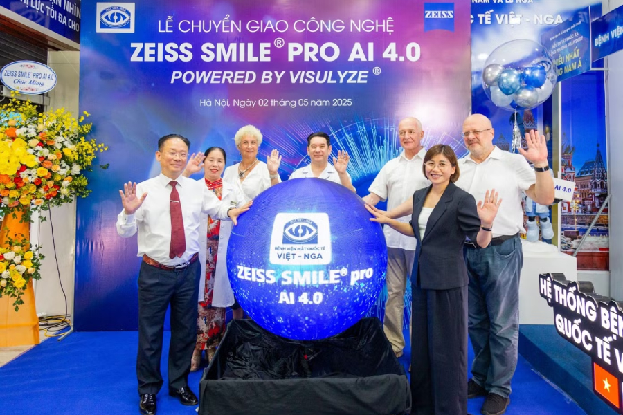 Tại Việt Nam, Bệnh viện Mắt Quốc tế Việt – Nga Hà Nội là đơn vị tiên phong trong lĩnh vực phẫu thuật khúc xạ hiện đại. Tháng 5/2025, bệnh viện chính thức tiếp nhận chuyển giao công nghệ xóa cận cá nhân hóa SMILE Pro AI 4.0 từ hãng ZEISS (Đức) – đánh dấu bước tiến quan trọng trong ứng dụng trí tuệ nhân tạo vào điều trị tật khúc xạ.